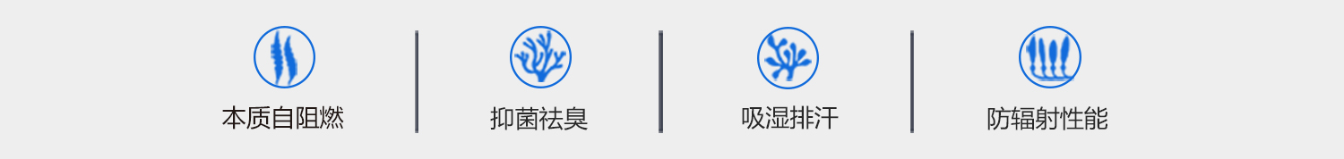 以海藻酸鈉為原料,通過自主研發(fā)的專用技術制備的海藻酸鈣短纖維。不添加任何阻燃劑的條件下,海藻纖維極限氧指數LOI≥45%,燃燒發(fā)煙量小、無熔滴、無延流、離火自熄滅。